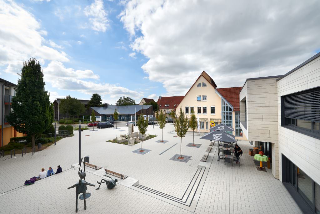 Mit der Grundsanierung des Rathauses von Pleidelsheim wurde auch die Ortsmitte mit angrenzendem Generationenpark vollständig neu gestaltet.